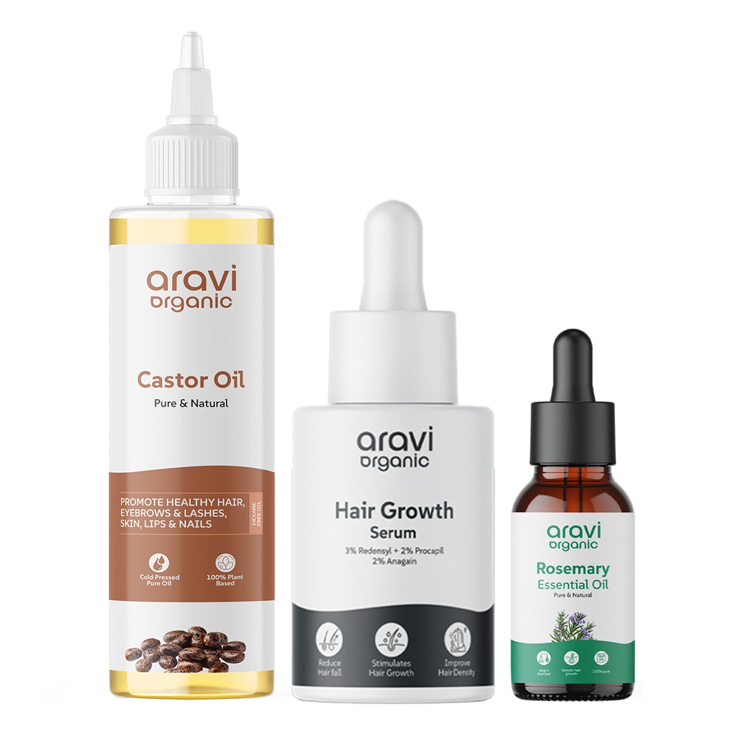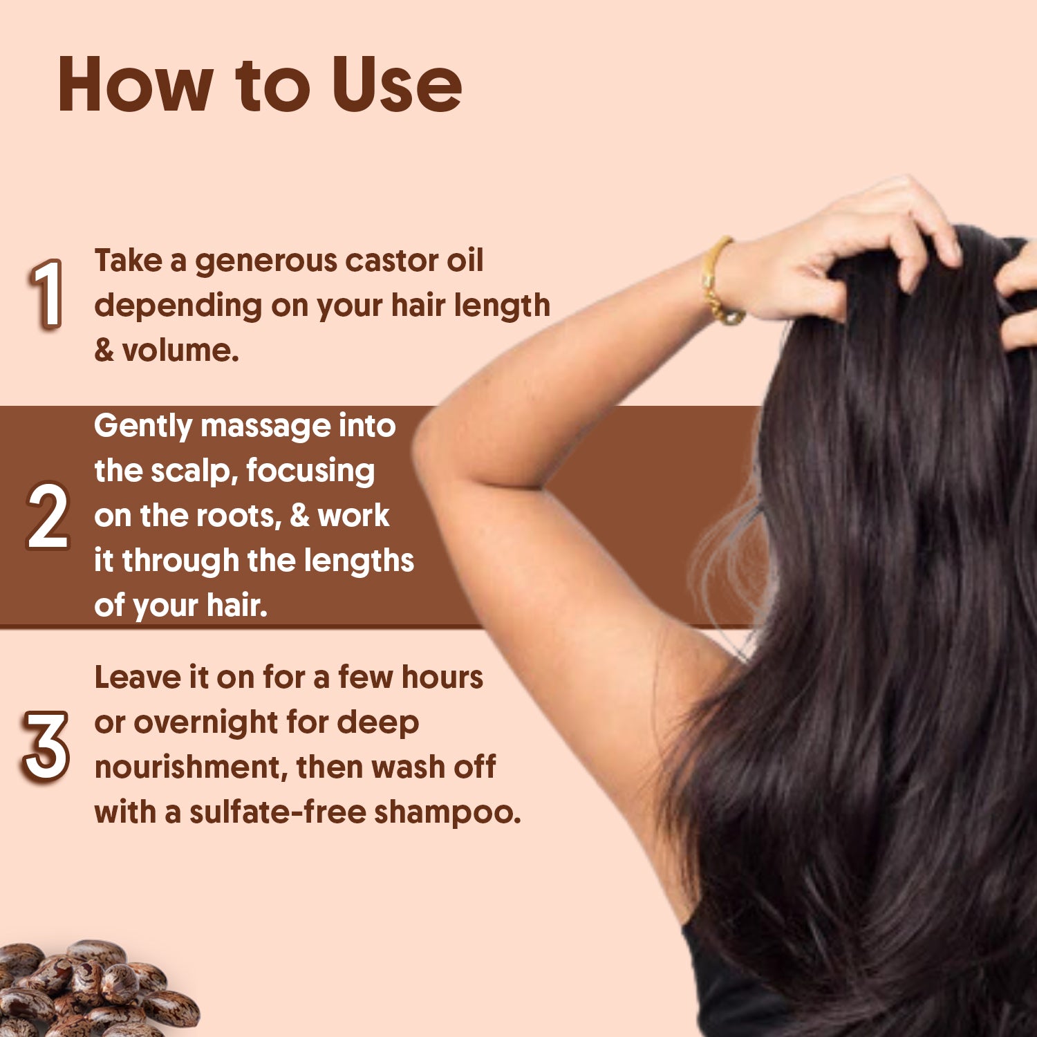 Code: COMBO25Step 1: Mix a few drops of rosemary oil with Castor Oil as per hair length to stimulate hair growth. Massage into your scalp, focusing on thinning areas.