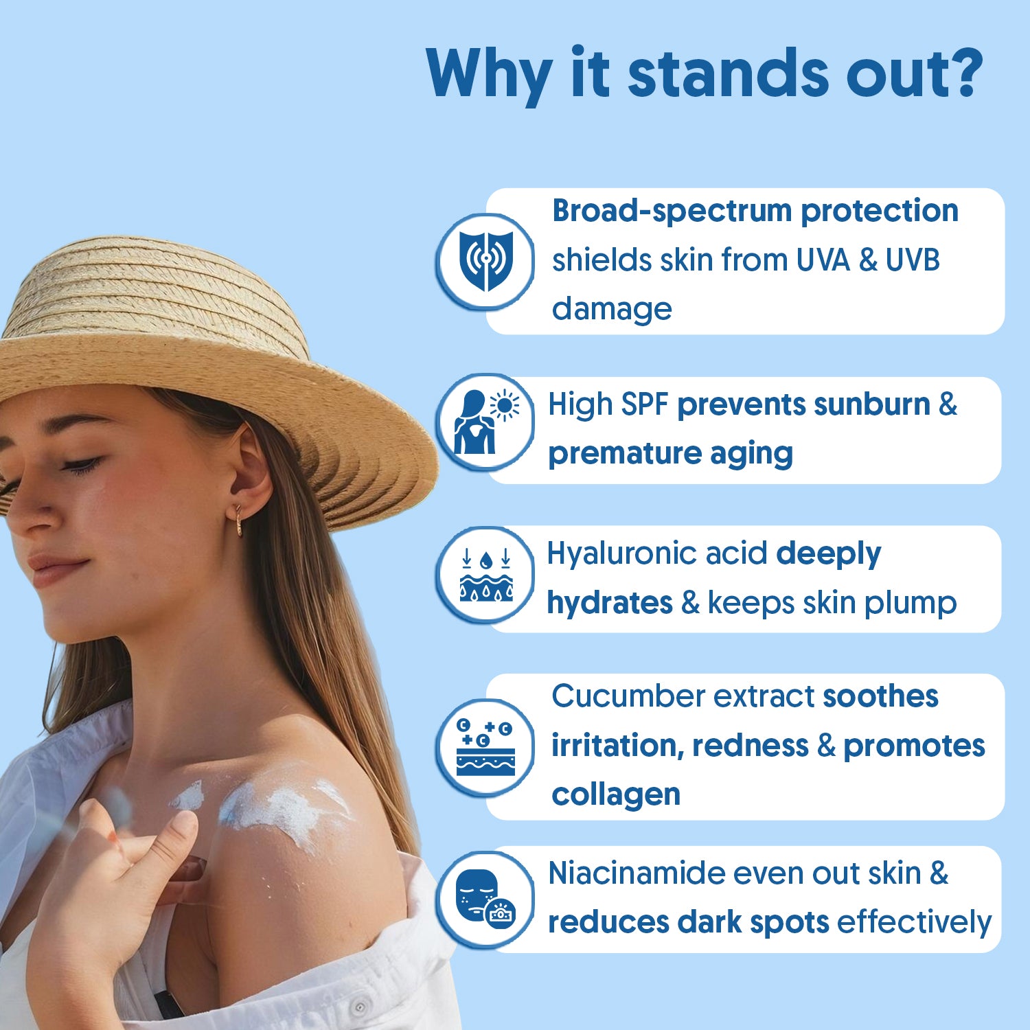 I love that it’s packed with skin-loving ingredients that feel nourishing and soothing. Plus, it works great under makeup without making my skin oily. The SPF 50 is perfect for long hours in the sun, giving me complete peace of mind.