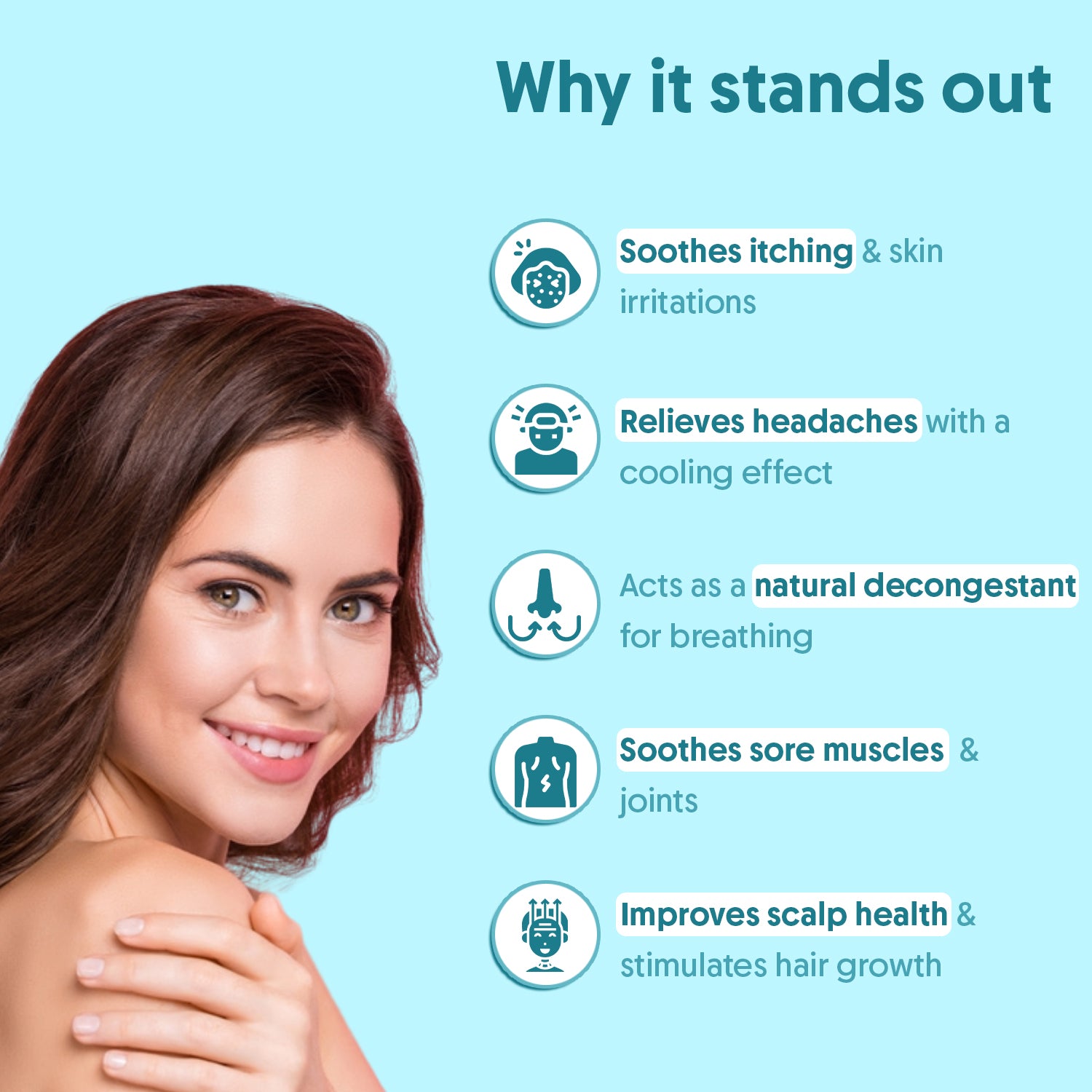 Mix a few drops of Peppermint Essential Oil with a carrier oil and massage into the scalp to promote hair growth and reduce dandruff.