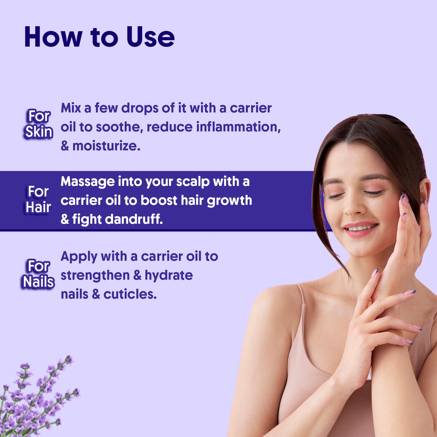Lavender Essential Oil is 100% natural and pure, and hence highly concentrated and potent. Always dilute essential oils with a suitable carrier oil, as per the recommendation of a trusted expert or source. For external use only. Keep out of reach of children and pets. Avoid contact with eyes.