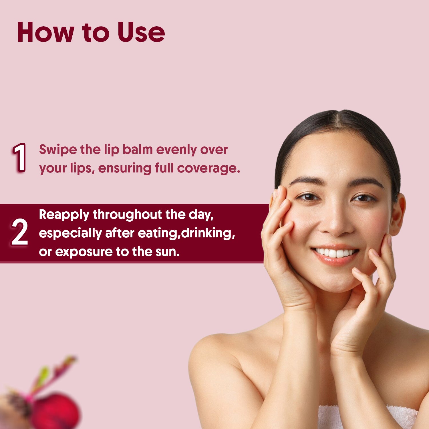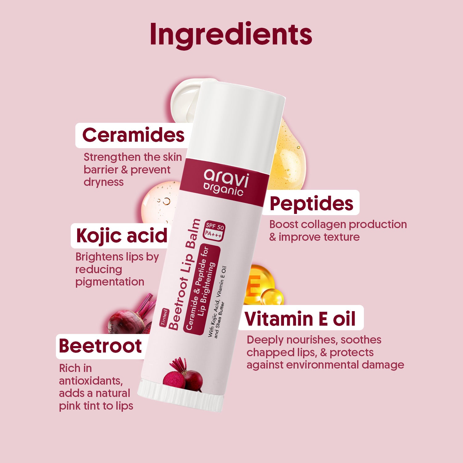 Beetroot Tinted Lip Balm: Aravi Organic Lip balm comes in a user-friendly chapstick tube, making it easy to apply anytime, anywhere. Just apply whenever your lips need hydration or feel dry for instant moisture.