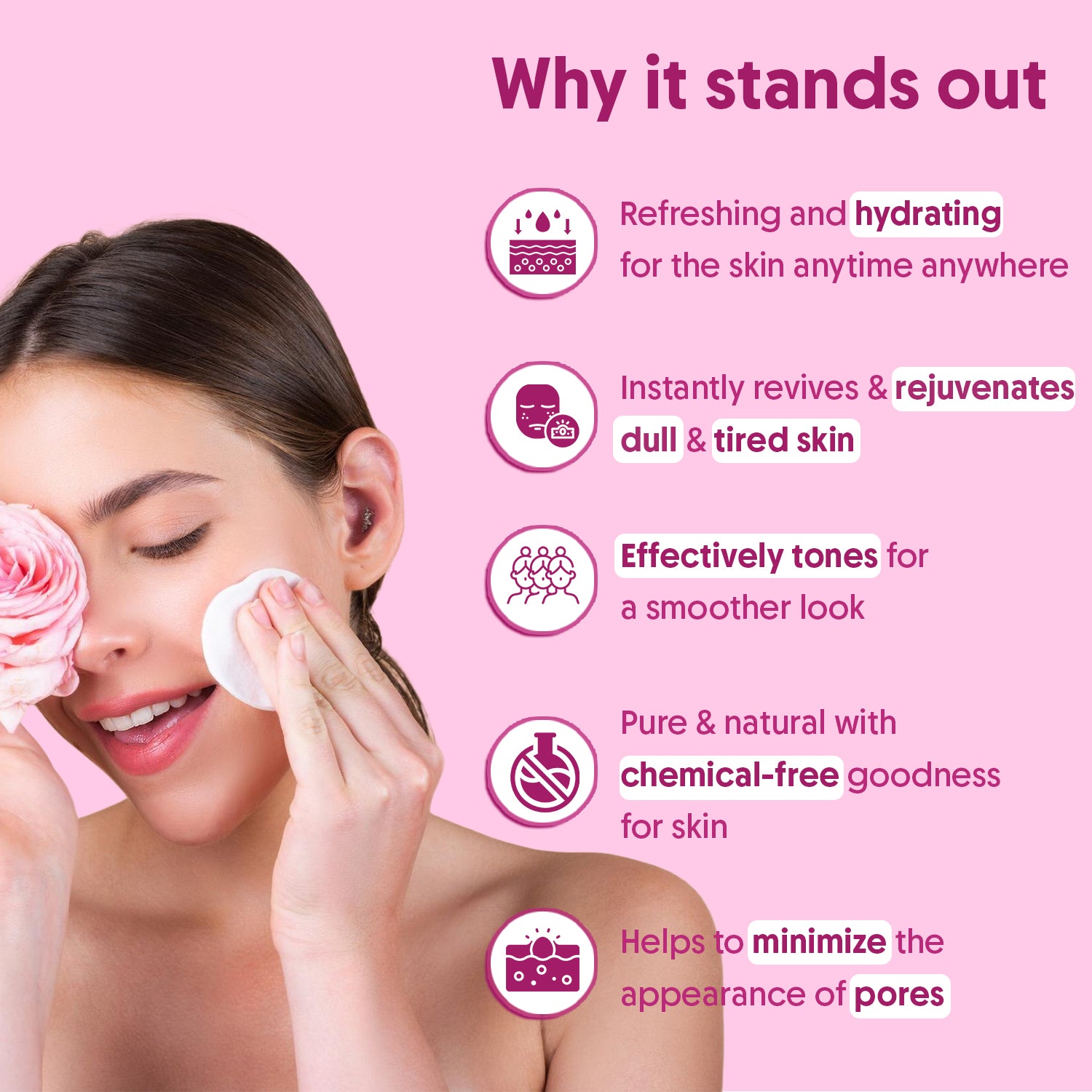 This rose water feels really natural and is very refreshing. My skin has greatly improved since I started using it every day after washing my face. It's bringing with it an entirely new vibe. I've used a lot of different brands of rose water, but this one seems to be the greatest. My favorite toner of all time.